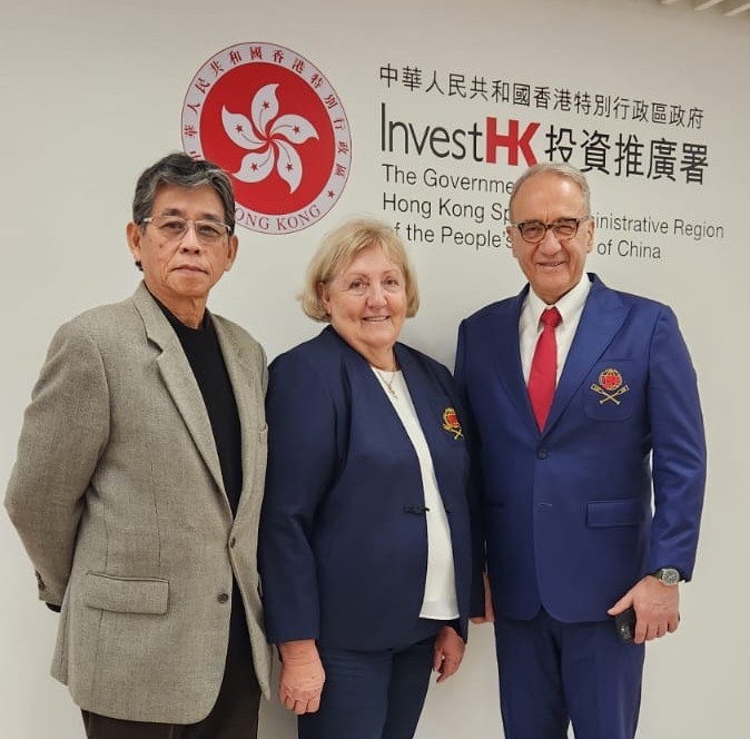- Peter Tang (IDBF General Secretary), Loretta Lewis (IDBF Treasurer) and Claudio Schermi (IDBF President) at Invest HK